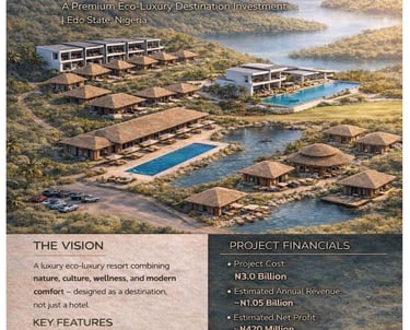 Nestled in Edo State, our resort blends nature’s calm with thoughtful luxury, creating a peaceful retreat for every guest.
